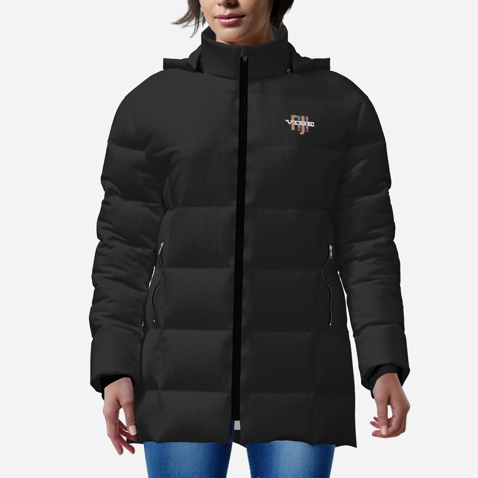 "FijiVibe" (Black) Women's Zipper Thicken Jacket Coat