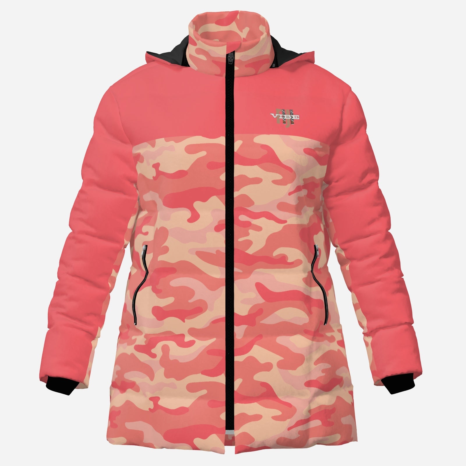 "FijiVibe" (Coral Camo) Women's Zipper Thicken Jacket Coat
